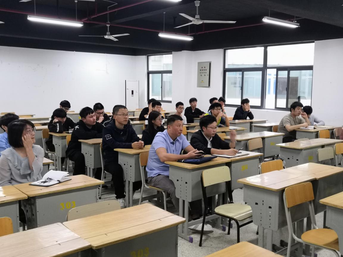 随后,召开了赛前冲刺动员大会。会上,巫少龙书记从作品细节与外观完善、现场答辩环节演示、PPT制作、讲稿写作及答辩选手精神面貌等方面详细地剖析了各个环节注意事项、要领及技巧,为大家进行了精彩的讲解和极富感染的加油鼓劲。 周明安经理从决赛作品的设计说明书完善、技术指标的突出等方面为各作品进行了详细的指导。