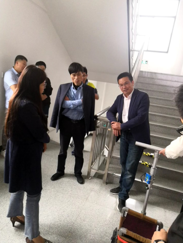 巫书记和周经理在认真对进入决赛作品进行实地检查与指导。
