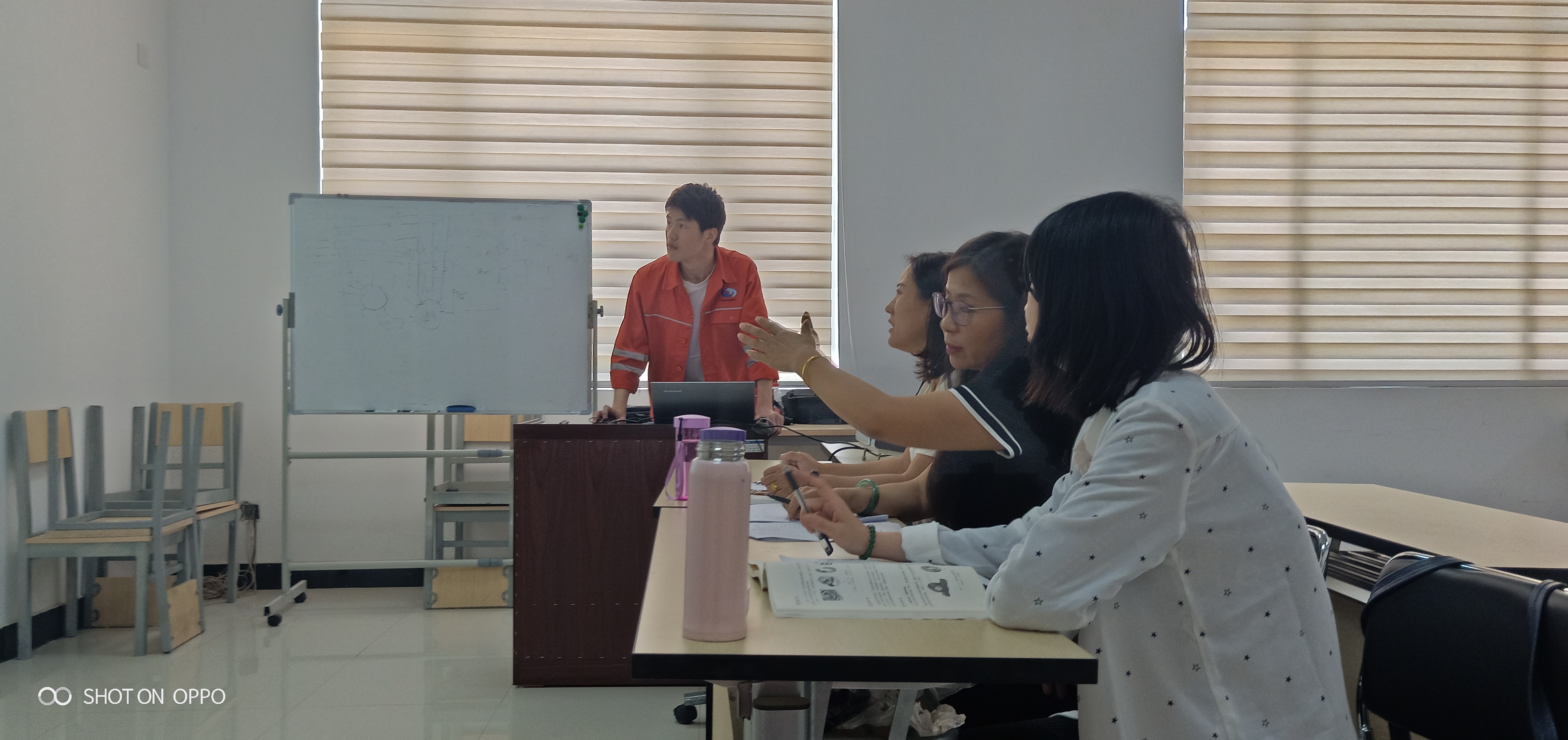 2019年5月22日至23日,太阳成集团tyc7111cc副经理张玉贤教授带领邓玉娟和郭骞惠两位老师,一行三人前往浙江巴陵恒逸己内酰胺有限责任公司,对在企业进行综合实践的机电和数控专业的49名员工进行毕业设计答辩。