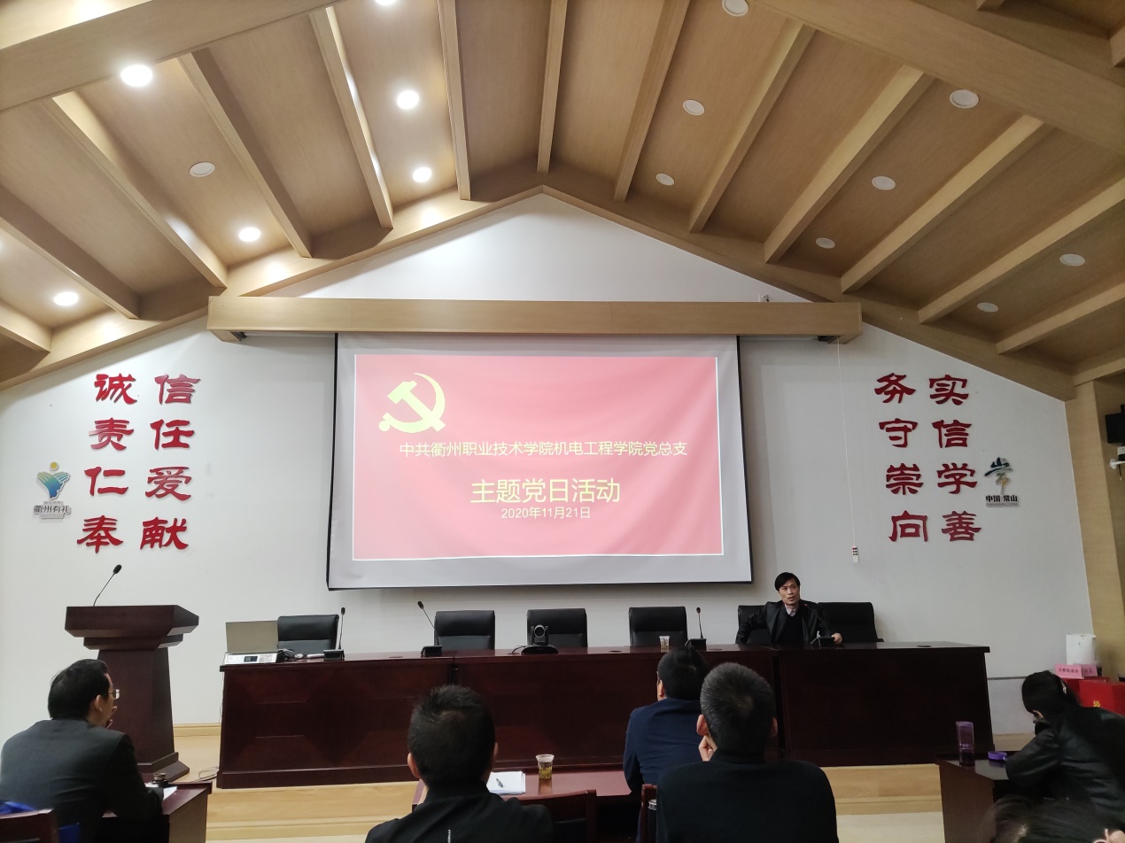 党支部代表发言中,数控党支部书记徐文俊说,数控党支部将以十九届五中全会精神为引领,党建统领,按照公司、二级公司的统一部署,认真完成各项工作。发挥党员教师在教学、科研、社会服务等方面的先锋模范带头作用,引导员工党员在班级管理、班级学习方面的带头引领作用,形成一股向上、向尚的浓厚学习氛围,为公司创建“双高”公司贡献力量。机电党支部书记祝惠一计划以工业机器人系统集成及工业机器人典型应用为专业方向。工业机器人技术专业分别与机电一体化技术、机械制造与自动化等机械专业组成智能制造专业群。工业机器人系统集成方向以机器人集成应用全国职业技能大赛为抓手,对接信息工程公司的智能制造系统;工业机器人典型应用与数控机床结合,配合MES等信息系统,打造智能制造平台,同时对接衢州高端制造行业,与企业合作打造工业机器人焊接培训与应用平台。机制党支部书记李东方将代领本专业教师响应公司“做事情的第一落脚点是为了员工,第二落脚点是为了公司的长远发展”号召,在智能制造专业群打造过程中,实现“三教”改革,在业内形成专业(群)技术规范,坚持教师“走出去”学习、“引进来”先进的做法。汽销党支部书记金鑫君深刻认识到课程建设的基础作用,力争提高课程质量,将提升员工的学习效果作为教育的出发点和落脚点。今后将以教师技能大赛为抓手狠抓课程建设,在实际教学中落实信息化教学、课程思政等理念;从课堂教学实践中落实三教改革理念,提炼教师、教法、教材的改革路径。汽检党支部书记方晓汾说,根据新一轮科技革命和产业变革,调整汽车检测与维修技术专业,丰富汽检专业内涵,以智能化、电气化、网联化为方向发展,实现从“机电产品”到“智能产品”重大转变。