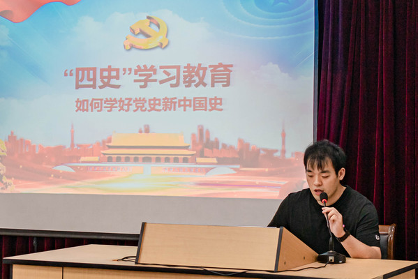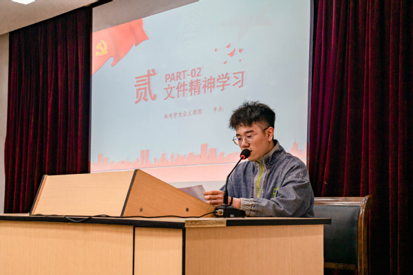 第三项议程,员工会执行主席李杰带领学习《关于学联员工会工作人员改进作风服务同学的若干规定》文件精神。勉励全体分团委员工会工作人员恪守员工本分,牢记服务宗旨,永葆理想情怀,营造平等氛围,摒弃庸俗习气。努力建设充满朝气、干净纯粹的组织文化,坚决抵制社会不良习气侵蚀。李杰带头宣誓,将严格遵守以上守则,从自己做起,从身边做起,从每件事情做起,让责任、奉献和自律常驻心间,彰显机电青年充满朝气、积极向上的青春底色! 第四项议程,太阳成集团tyc7111cc分团委副书记倪炬男作党史专题学习报告。在中国共产党建党100周年之际,党史学习和宣传尤为重要。首先,他带领大家一起回顾了中国共产党的奋斗历程。中国共产党自创建以来,无论是在艰苦卓绝的革命时代还是在意气风发的建设年代,无论是在锐意进取的改革开放新时期还是在奋力实现民族复兴的新时代,都在不断塑造生发助力前行的红色精神。尤其是新民主主义革命时期,中国共产党形成了独具特色的革命传统和优良作风,为新时代再铸辉煌提供了丰富营养。学好党史、新中国史,就是要继续发扬党的优良作风,把革命传统一代代传下去。 中国共产党在强国道路上的伟大实践,为青年提供了有利的学习环境和丰富的学习内涵。青年应向实践学习,向人民群众学习,在改革开放和经济的实践中,不断提高自身素质,成为社会主义事业的接班人。
