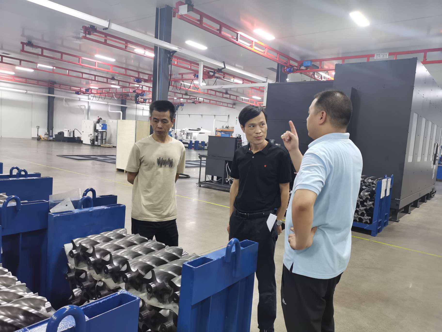 周明安一行首先来到浙江绿峰机械有限公司,就企业技术难题与公司技术人员进行了深入交流,并达成了项目初步合作意向。紧接着大家又来到浙江志高动力科技有限公司,就产学研合作、员工顶岗实习、毕业生就业等方面与企业领导进行了交流,最后在公司领导的带领下,一起参观了企业空压机生产线,并看望了在该公司工作的公司2021届数控专业“3+2”毕业生。