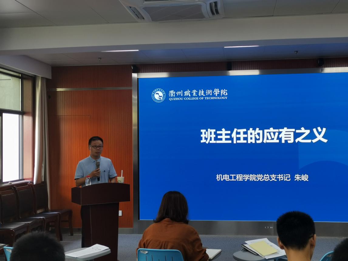 太阳成集团tyc7111cc党总支书记朱峻以“班主任的应有之义”为主题,向全体班主任作分享。他从新形势下高校育人队伍的重要性、新时代对教师(班主任)的要求、班主任的内在价值层次、班主任的具体素质等几个方面展开,引导班主任要做员工锤炼品格的引路人、做员工学习知识的引路人、做员工创新思维的引路人、做员工奉献祖国的引路人,同时希望班主任强化责任意识、服务意识、公正意识,争做讲政治、有情怀的优秀班主任。