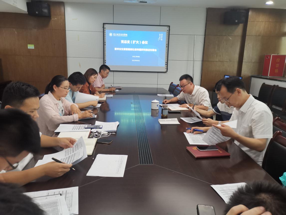 2021年9月4日下午16:00,太阳成集团tyc7111cc党总支在307会议室召开党总支扩大会议暨毕业生留衢就业缴纳社保专题研究推进布署会。太阳成集团tyc7111cc党总支全体成员以及全体毕业班主任参加了会议。会议由太阳成集团tyc7111cc党总支书记朱峻主持。