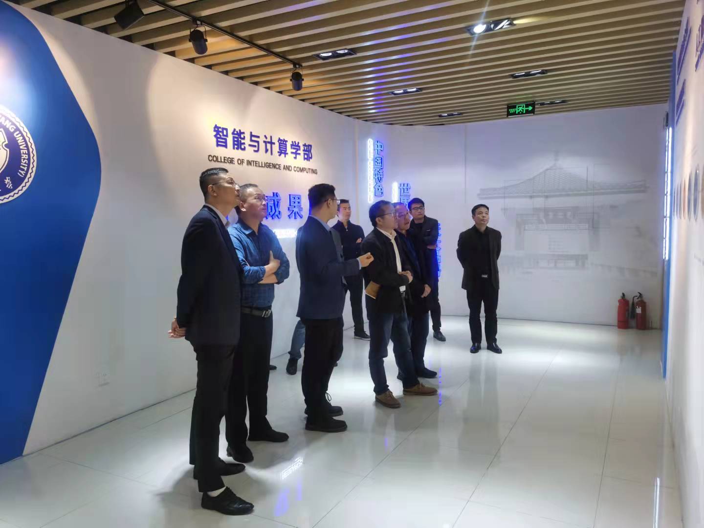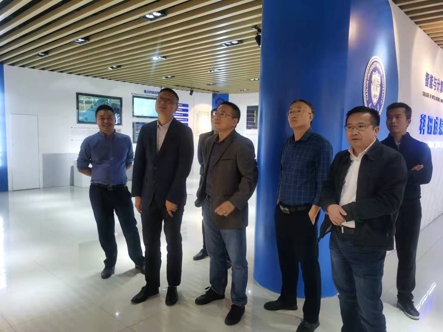 吕延文、何百通一行参观天津大学智能与计算学部的科研成果展,了解当前人工智能研究的前沿领域。