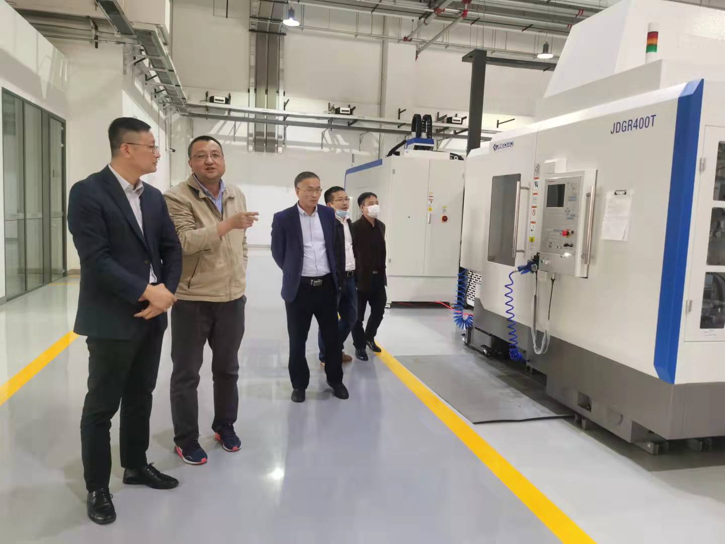 在天津职业技术师范大学机械工程公司,吕延文、何百通一行参观实训室基地,随后进行了座谈,双方就“双高”建设、特色实训基地建设、治理体系建设等特色办学经验进行了交流。