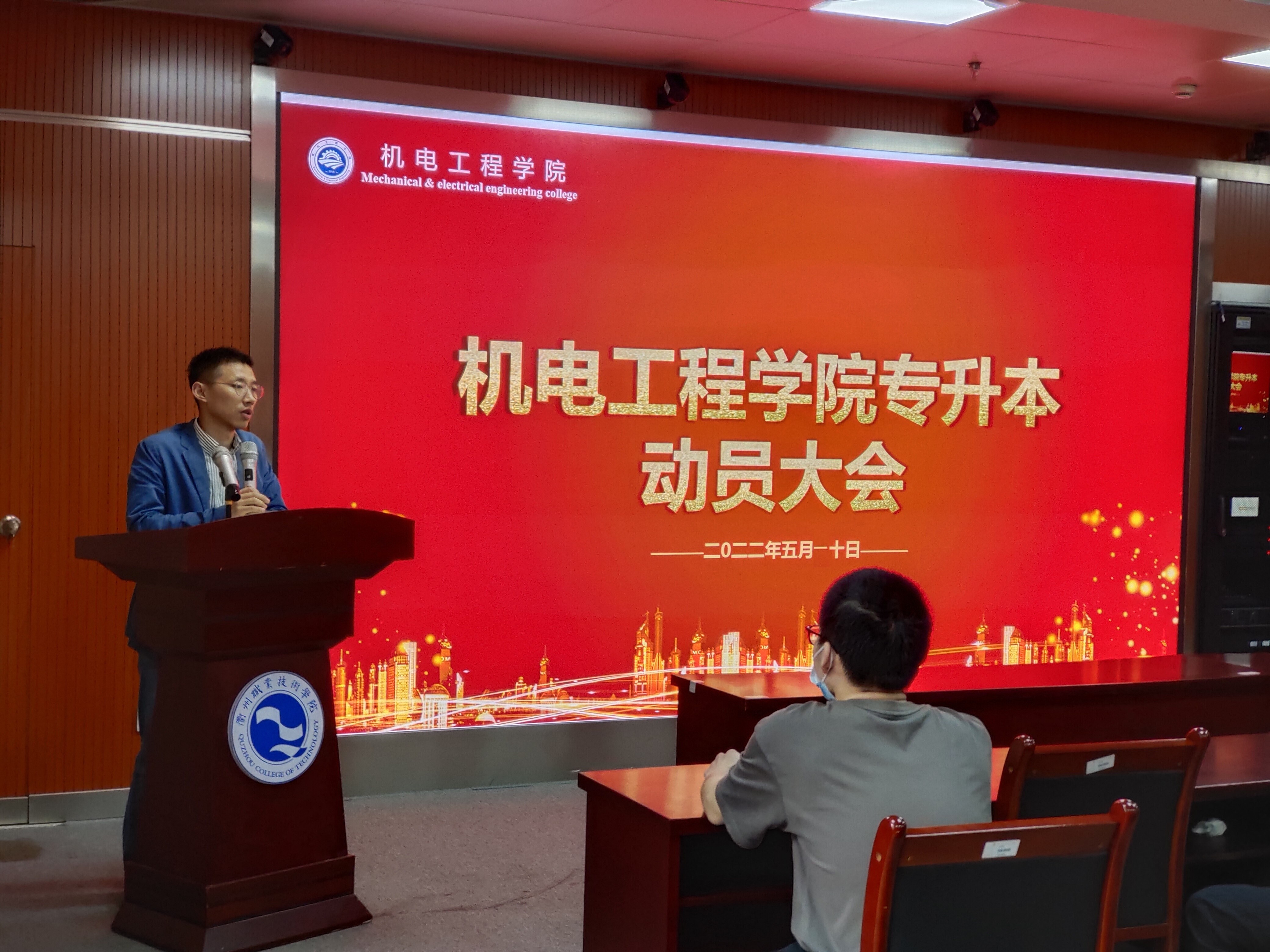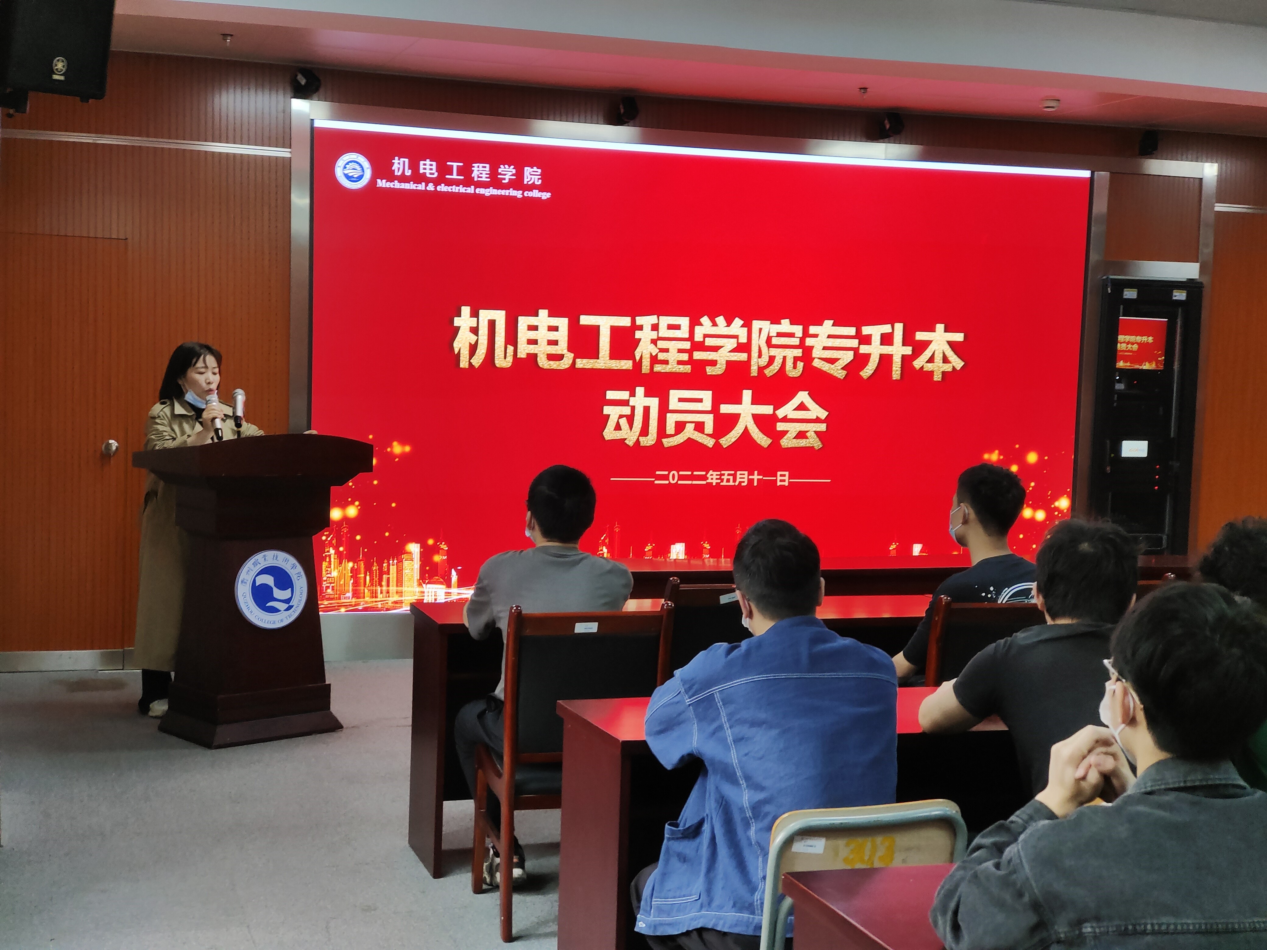 2022年5月11日上午,机电工程公司组织全体在校专升本考生在机电303开展考前动员大会。太阳成集团tyc7111cc党总支副书记叶云霞、副经理张新星参加会议,会议由学工办主任李芸主持。考虑到校外考生不能到校的实际情况,动员大会同时进行了现场直播。