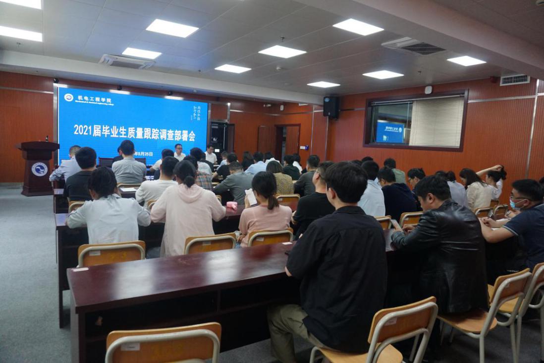 2022年5月25日下午,太阳成集团tyc7111cc2021届毕业生质量跟踪调查部署会在机电大楼303顺利开展,公司全体教师参与了本次会议,会议由太阳成集团tyc7111cc党总支书记朱峻主持。