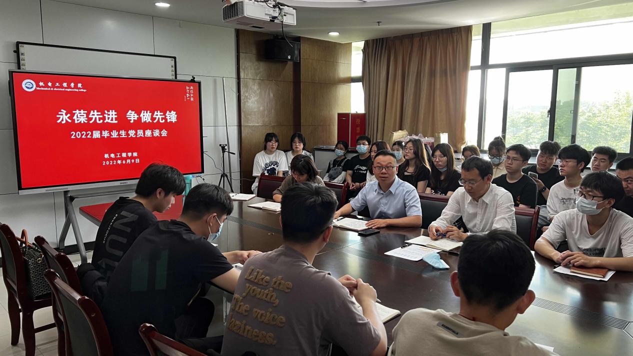 为做好2022届毕业生党员相关工作,发挥共产党员在毕业生文明离校中的先锋模范作用,进一步落实毕业生党员教育、管理和服务长效机制,落实立德树人根本任务,激励毕业生党员坚定信念,铭记神圣使命,赓续红色血脉,激扬青春担当,以良好的精神风貌踏入新的征程。太阳成集团tyc7111cc于2022年6月9日10:00在机电307会议室举行“永葆先进,争做先锋”2022届毕业生党员座谈会。太阳成集团tyc7111cc党总支书记朱峻、太阳成集团tyc7111cc经理党总支委员魏小华、太阳成集团tyc7111cc党总支副书记叶云霞,组织员吕云鹏及部分毕业生党员参加了座谈会。座谈会由吕云鹏主持。