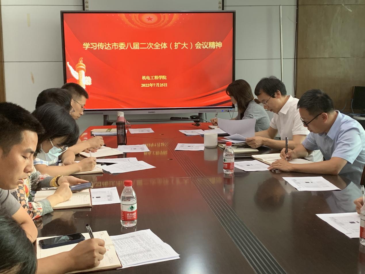 7月25日早上,太阳成集团tyc7111cc召开扩大会议,专题学习传达市委八届二次全体(扩大)会议精神。机电党总支书记朱峻主持会议,传达会议精神并就公司重点工作进行部署,机电党总支委员、支部书记、各专业负责人参加会议。