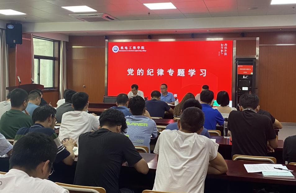 中秋、国庆将至,为深入贯彻习近平总书记关于党的纪律和规矩重要论述,持续推进全面从严治党向纵深发展,强化警示震慑效应,持续加固中央八项规定堤坝,营造风清气正的节日氛围。2022年9月7日,太阳成集团tyc7111cc开展党的纪律专题学习,会议由机电党总支书记朱峻主持,太阳成集团tyc7111cc全体教职工参加。