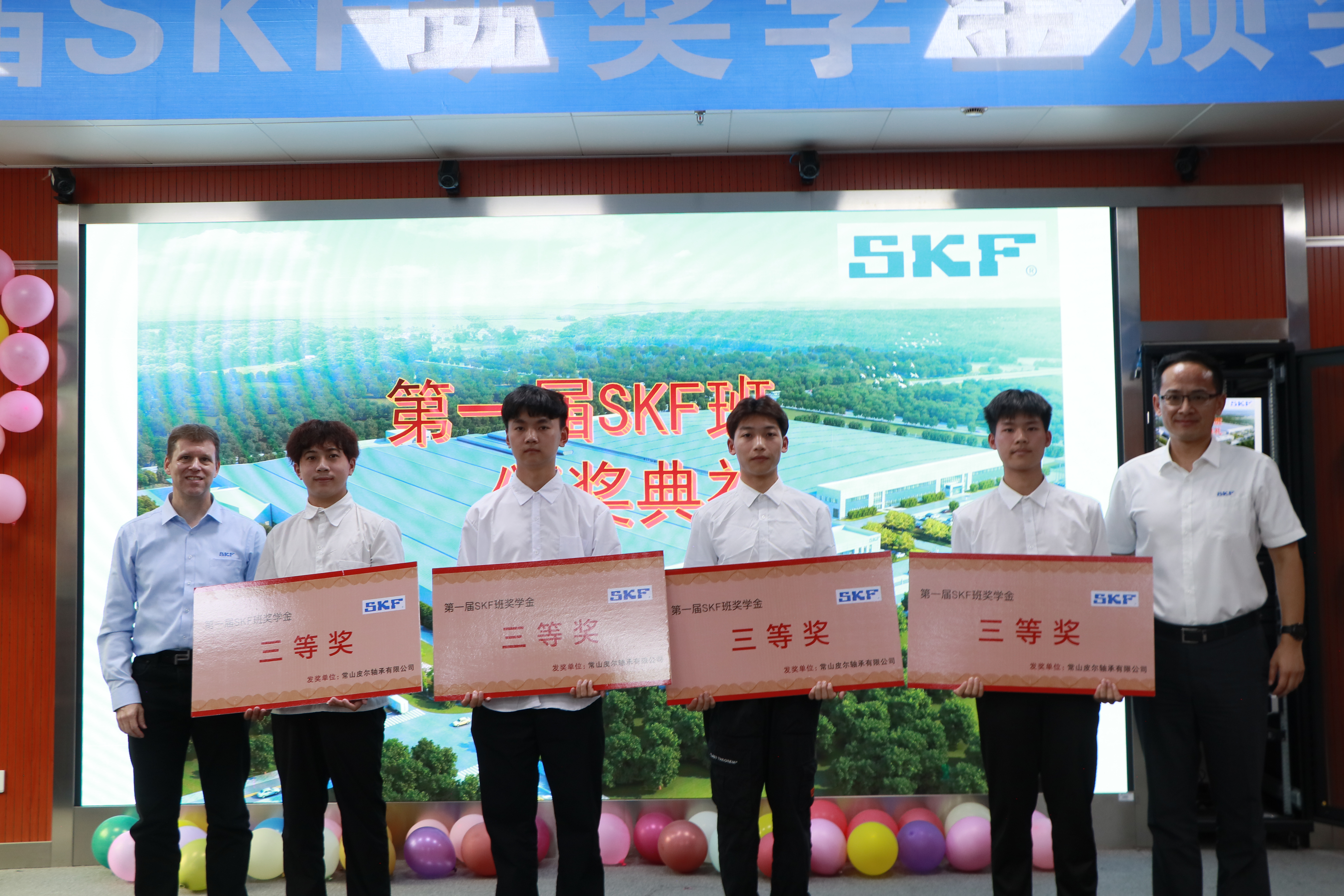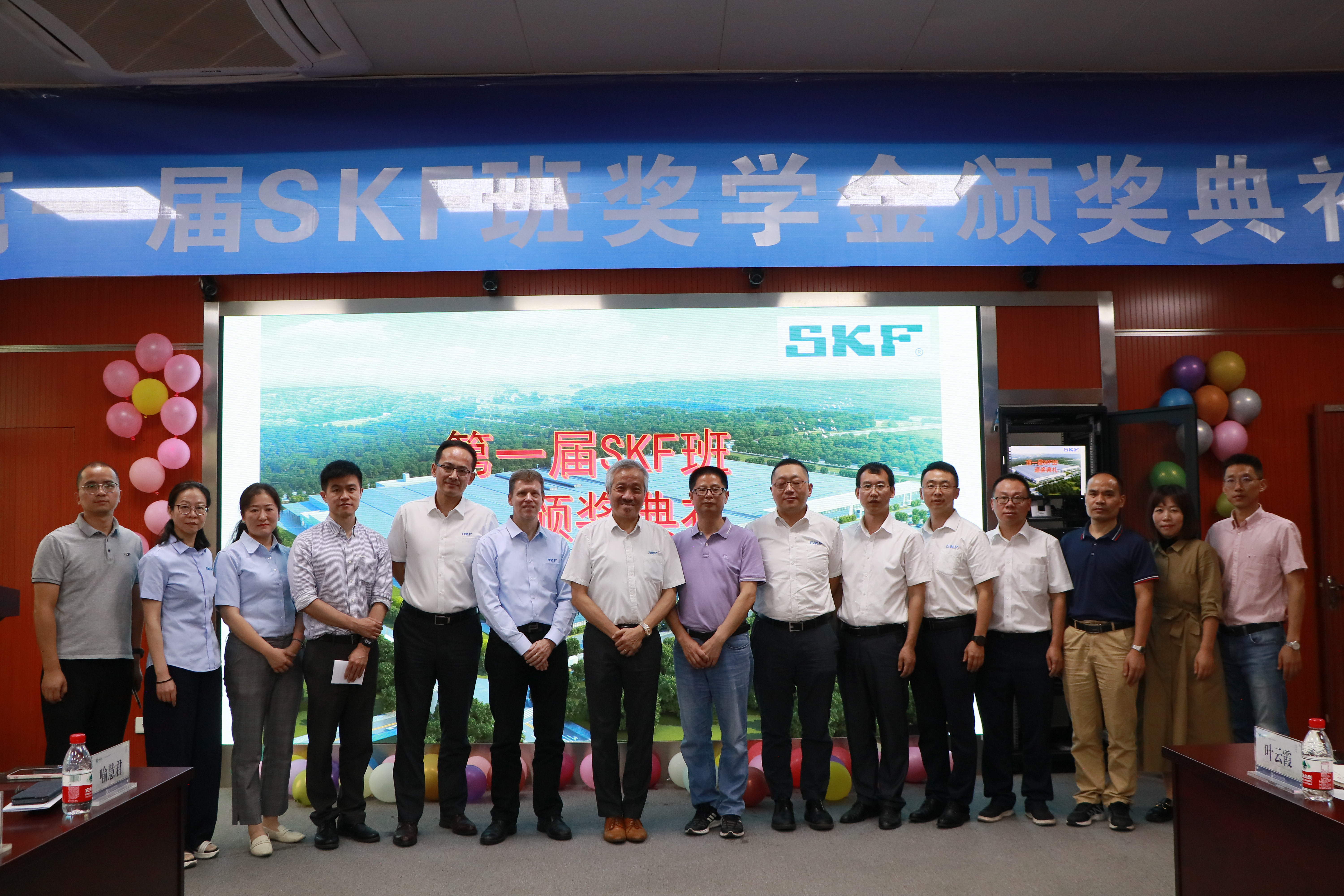 2022年9月22日上午,太阳成集团tyc7111cc与常山皮尔轴承有限公司联合创办的首届“SKF”订单班颁奖仪式在机电楼303隆重举行,斯凯孚中国及东北亚区总裁唐裕荣一行,太阳成集团tyc7111cc党委委员、副董事长余建军、太阳成集团tyc7111cc领导班子出席了本次颁奖仪式。