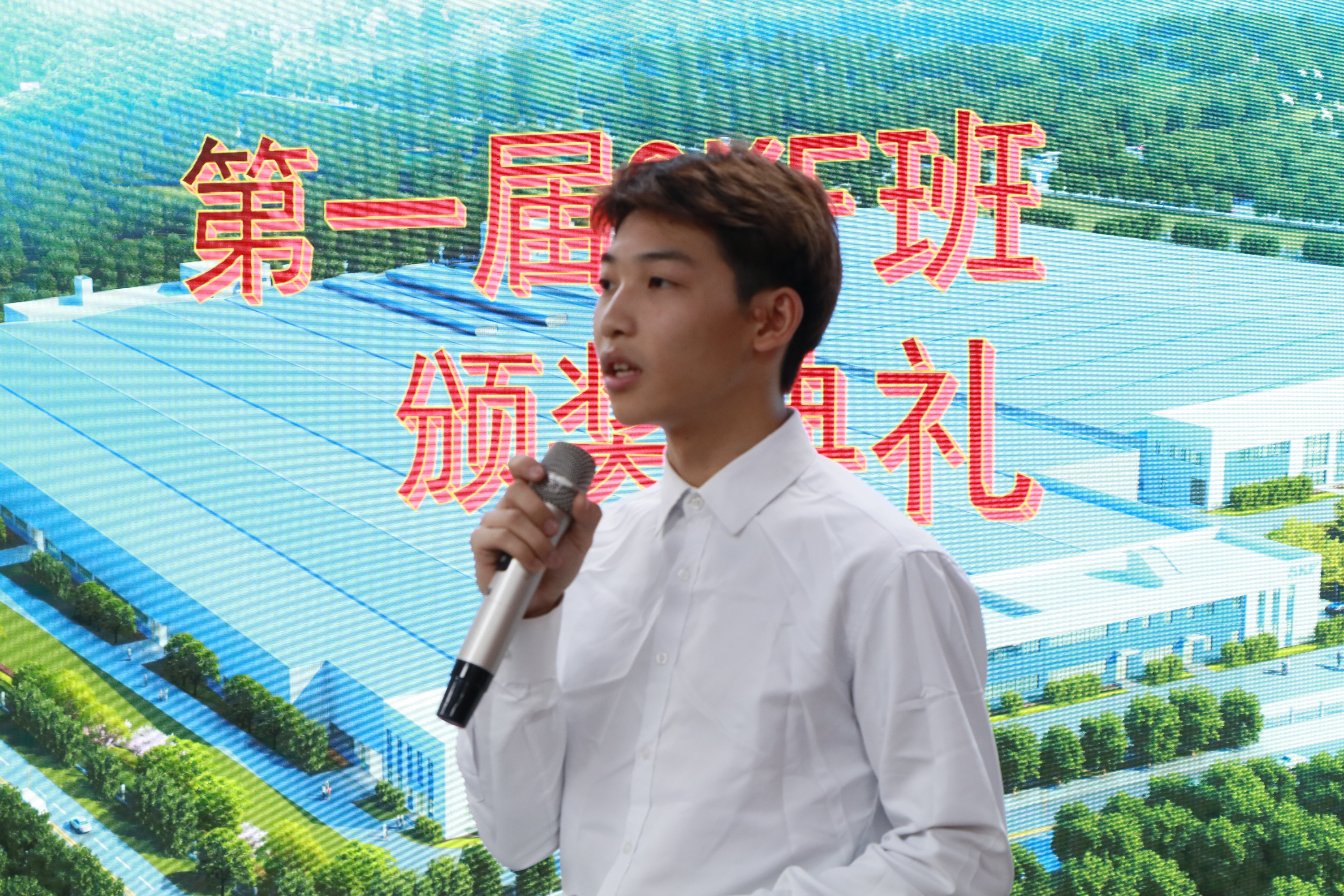 “SKF”订单班优秀学员代表王晨瑜向大家分享了自己在斯凯孚的实习经历,并表示今后将继续在斯凯孚实习和就业。