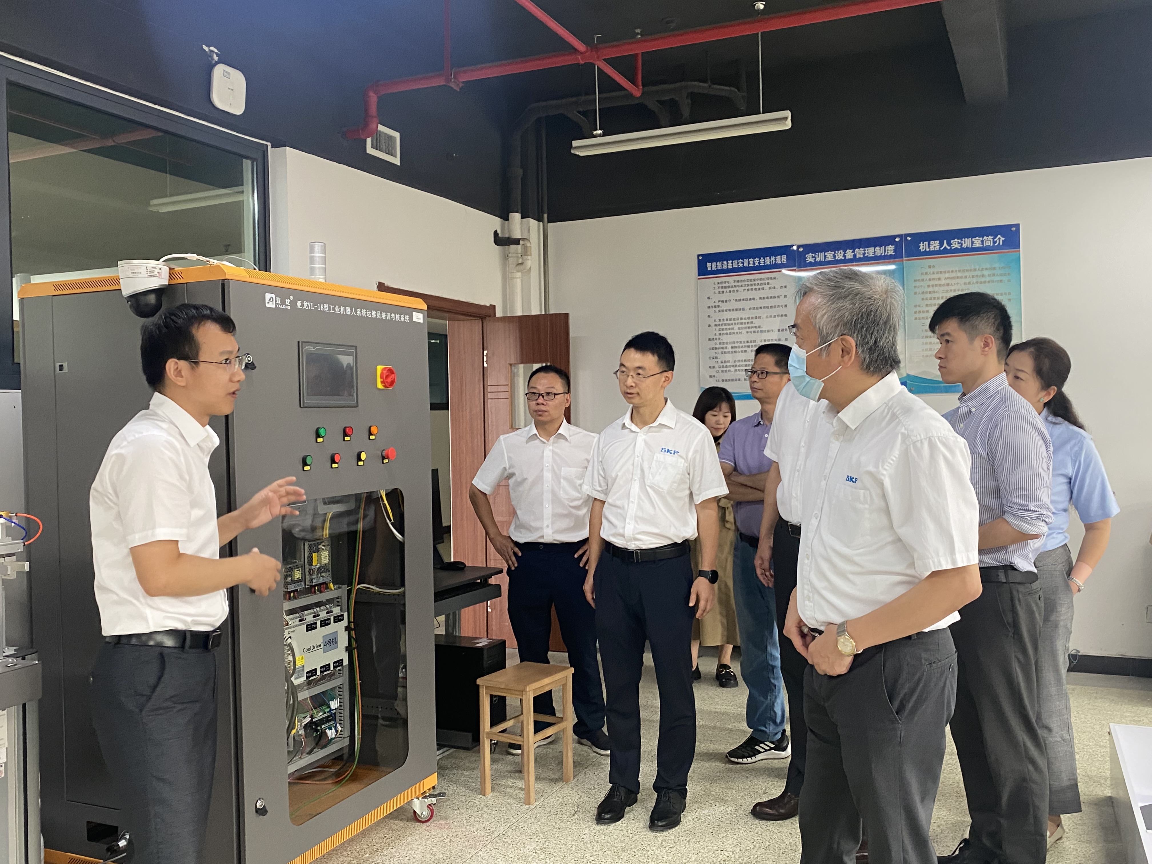 仪式开始前,唐裕荣实地参观走访了机电实训大楼,详细了解了公司的情况,并就下一步校企合作进行了讨论交流。