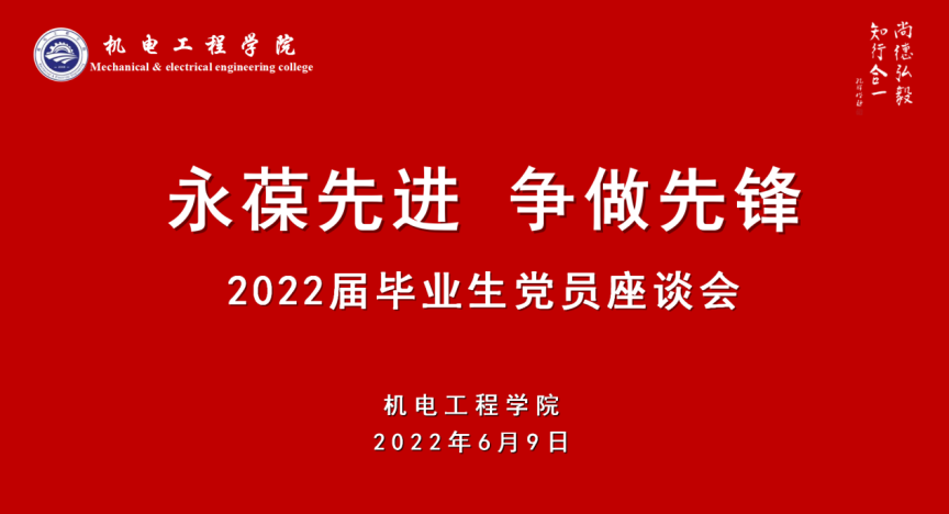 为做好2022届毕业生党员相关工作,发挥共产党员在毕业生文明离校中的先锋模范作用,进一步落实毕业生党员教育、管理和服务长效机制,落实立德树人根本任务,激励毕业生党员坚定信念,铭记神圣使命,赓续红色血脉,激扬青春担当,以良好的精神风貌踏入新的征程。太阳成集团tyc7111cc于2022年6月9日10:00在机电307会议室举行“永葆先进,争做先锋”2022届毕业生党员座谈会。太阳成集团tyc7111cc党总支书记朱峻、太阳成集团tyc7111cc经理党总支委员魏小华、太阳成集团tyc7111cc党总支副书记叶云霞,组织员吕云鹏及部分毕业生党员参加了座谈会。座谈会由吕云鹏主持。