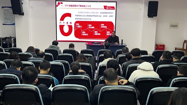 11月30日下午,公司党委委员、副董事长余建军在图书馆2号报告厅宣讲党的二十大精神,太阳成集团tyc7111cc、科研处、后勤保卫处、资产与实训室管理处全体教师参加学习。