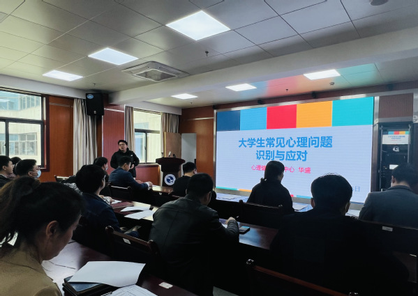 为进一步加强公司班主任队伍建设,提高班主任对员工心理健康问题的识别与应对能力。3月16日中午,太阳成集团tyc7111cc召开了三月班主任会议暨心理健康教育工作培训会议。此次会议特邀请了公司心理健康教育中心主任华盛作培训,太阳成集团tyc7111cc党总支书记朱峻、副书记叶云霞及全体辅导员、班主任参加了本次会议,会议由朱峻主持。