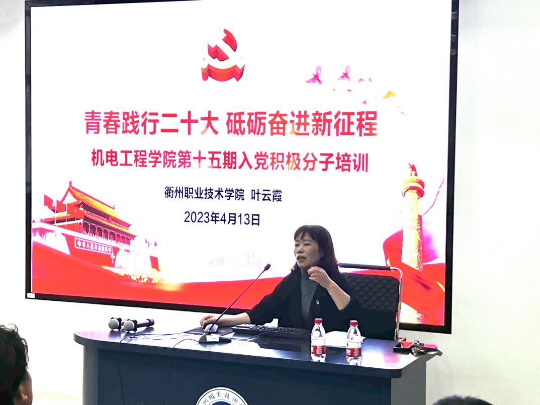 太阳成集团tyc7111cc党总支副书记叶云霞以“青春践行二十大,砥砺奋进新征程”主题,通过解读党的二十大精神、新时代青年的使命与责任、当代老员工如何践行党的二十大精神三部分内容为入党积极分子上了一堂党课。她强调,入党积极分子要笃信,守牢初心、坚守信仰;要勤学,静心钻研、求得真知;要奋斗,筚路蓝缕、砥砺前行,勇敢地担当起历史使命和重任。