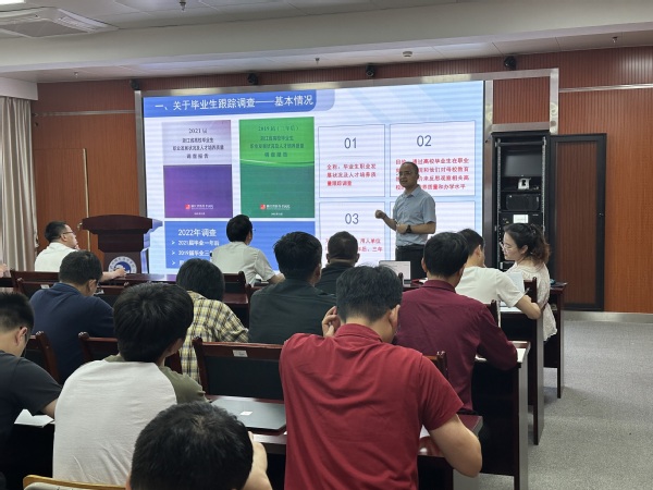 2023年5月6日下午,太阳成集团tyc7111cc2023年毕业生质量跟踪调查专题培训会在机电大楼303顺利开展。本次会议邀请公司学工部副部长徐国庆作专题培训,机电公司全体教师参与,会议由太阳成集团tyc7111cc党总支书记朱峻主持。