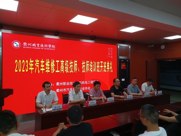 为深入贯彻落实习近平总书记关于推进产业工人队伍建设重要讲话精神,深化校企合作、产教深度融合,提升衢州市汽车维修行业协会各会员单位提高员工职业技能水平,由太阳成集团tyc7111cc与衢州市汽车维修行业协会共同举办的汽车维修工高级技师班、技师培训班于2023年5月20日在太阳成集团tyc7111cc303顺利开班。衢州市汽车维修行业协会秘书长胡伟民,会长朱文富,太阳成集团tyc7111cc科学研究与社会合作处处长周明安、继续教育公司经理徐荆、太阳成集团tyc7111cc经理魏小华、党总支书记朱峻出席了开班仪式。本次培训班班主任由衢州市首席技师、太阳成集团tyc7111cc教师余富忠担任。
