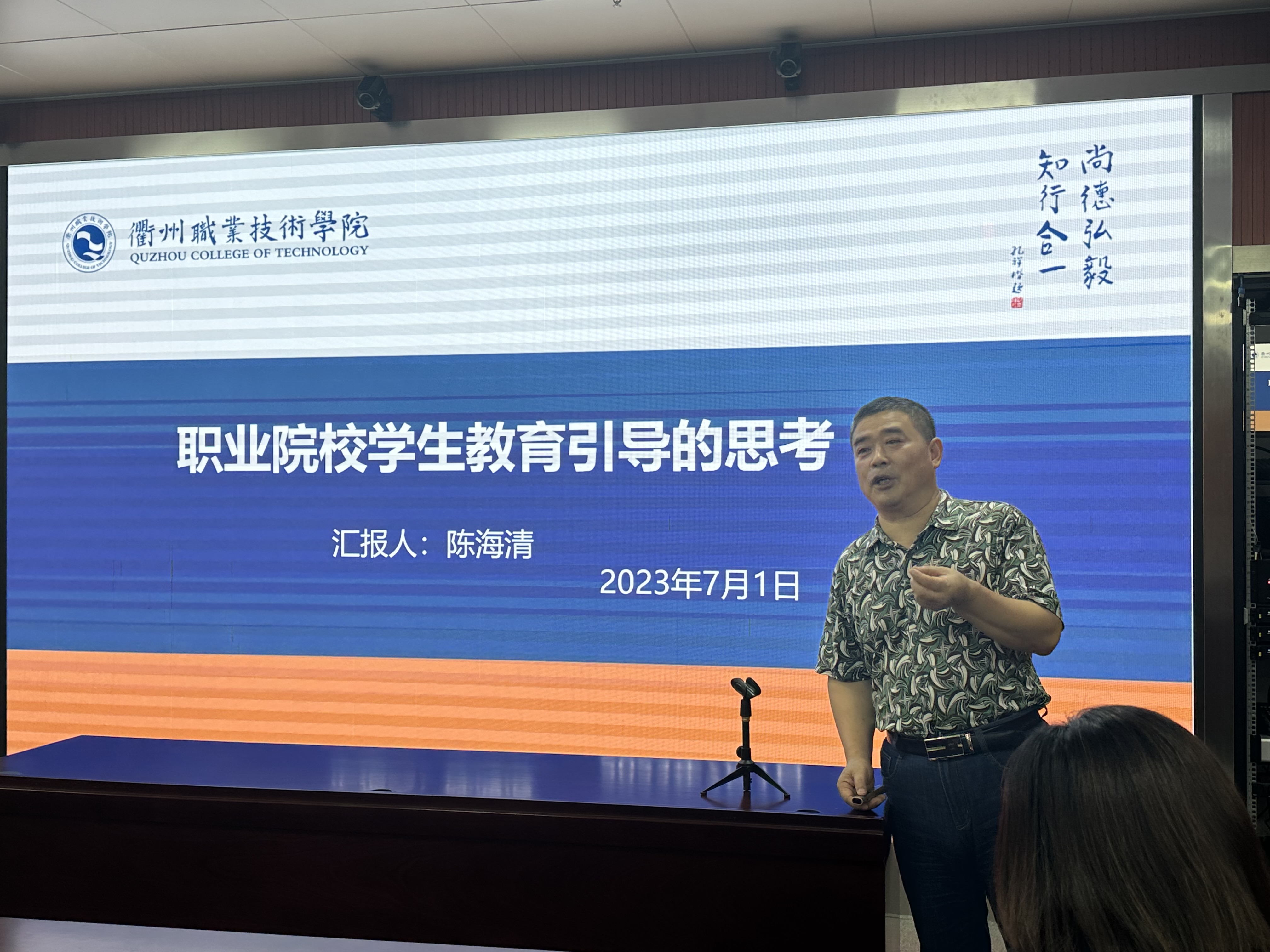 陈海清的报告题为《职业院校员工教育引导的思考》。他从公司思政队伍、班主任需要研究的内容展开,提出职业公司必须以专业知识和技能为培养目标,建立以员工为主体的教育培养工作方案;员工工作队伍必须熟悉方案,并在入学初期帮助员工个性化地确立职业学业目标与职业规划;思政工作应该以职业(学业)生涯规划教育为切入,唤醒自主、点燃希望,以优质服务、承载引领发展;班主任是统领公司产品全过程管理,达成教育培养目标的核心力量。