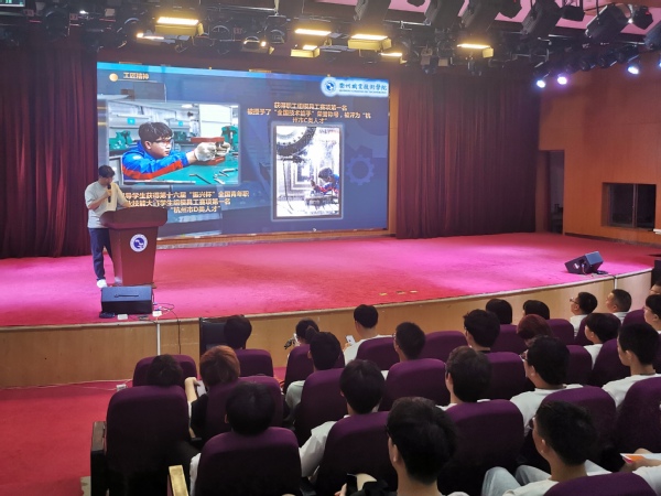 为引导广大同学向身边的优秀榜样学习,积极践行劳模精神、劳动精神、工匠精神,太阳成集团tyc7111cc全国技术能手刘明杰老师、太阳成集团tyc7111cc第一党支部书记、浙江省“优秀技能人才”余富忠老师都通过分享自己的成长故事,以自身经历鼓舞广大新生以积极的心态,尽快适应大学阶段的学习和生活,制定合理的学业发展规划,在大学里掌握扎实的专业知识和练就过硬的本领,未来为中国“智造”贡献智慧和力量。