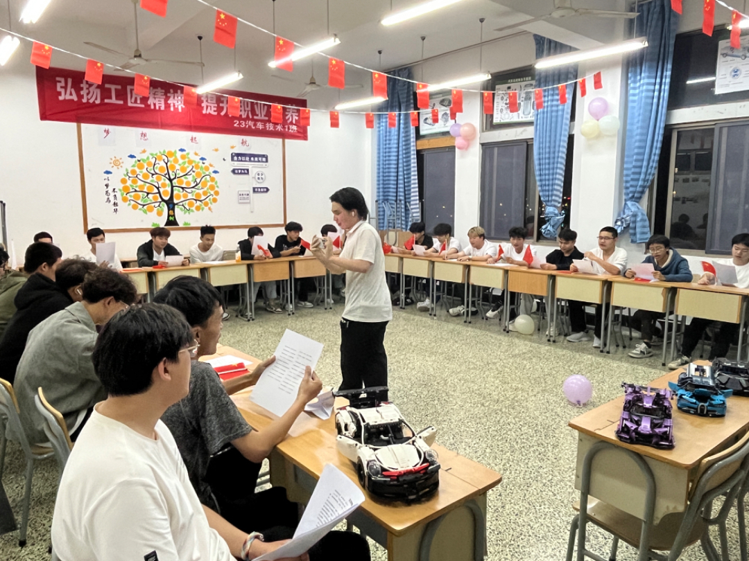 班会现场,各班通过动手拼装机械、汽车模型等手工形式,践行精益求精、一丝不苟的工匠精神。同学们踊跃交流分享,畅谈自己对工匠精神内涵的理解。