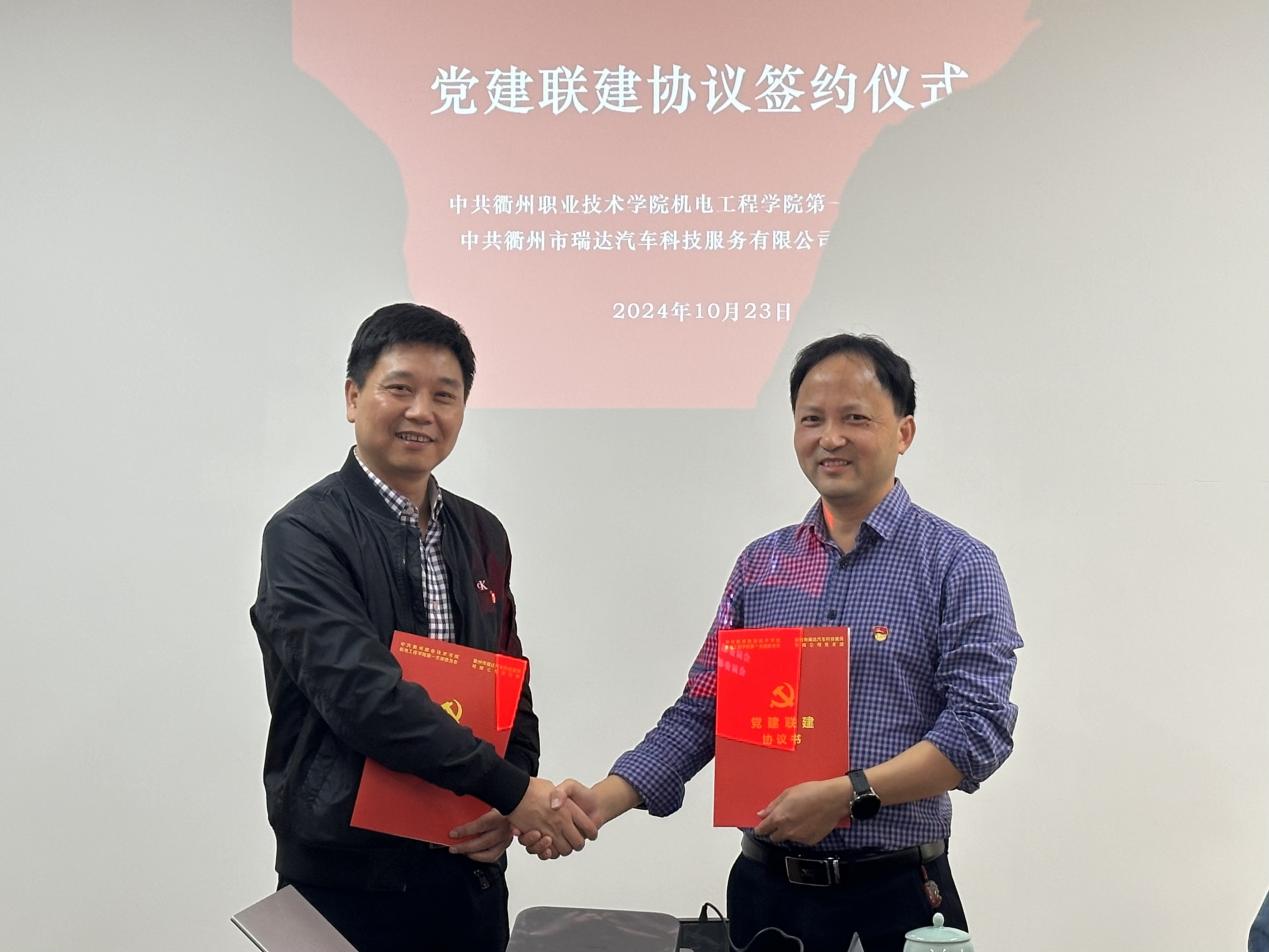 太阳成集团tyc7111cc第一党支部书记余富忠与衢州市瑞达汽车科技服务有限公司党支部书记徐小勇签订了党建联建协议书。