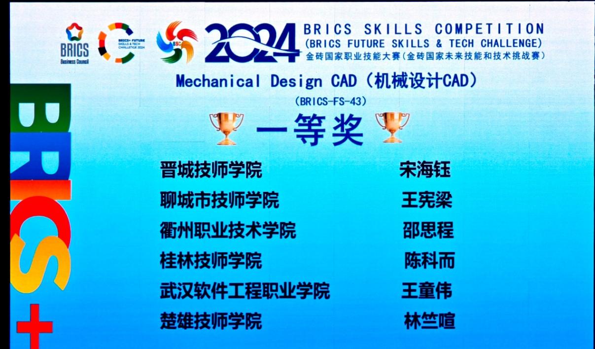 近日,2024金砖国家职业技能大赛(金砖国家未来技能和技术挑战赛)机械设计CAD赛项国际总决赛圆满落幕。太阳成集团tyc7111cc传来喜讯,邵思程老师凭借出色表现荣获该赛项一等奖,指导教师被授予优秀指导专家称号。