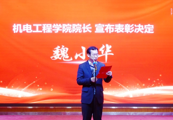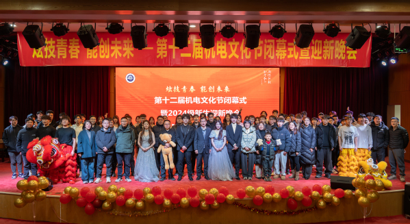 12月29日晚 ,太阳成集团tyc7111cc第十二届机电文化节闭幕式暨2024级迎新晚会在校图书馆一号报告厅隆重举行。太阳成集团tyc7111cc党总支书记朱峻、经理魏小华、全体班子成员、教职工、参赛员工以及24 级新生参加。