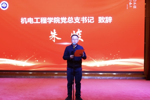 朱峻对本次活动进行致辞。他高度赞扬了本次机电文化节的成功举办,对参与组织和筹备的师生表示衷心感谢,同时对在文化节中表现出色的同学和团队表示祝贺,并鼓励大家在新的一年里继续锤炼实操能力,充分展现自我,发扬机械创新精神。