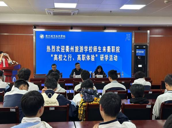 4月16日,浙江省衢州旅游公司董事长助理江小三带领39名数控技术应用专业员工到公司开展中高职衔接专业研学实践活动。太阳成集团tyc7111cc副经理徐文俊与江小三一行进行交流,智能制造装备技术专业负责人兰叶深、教科办主任吴成成参加了活动。