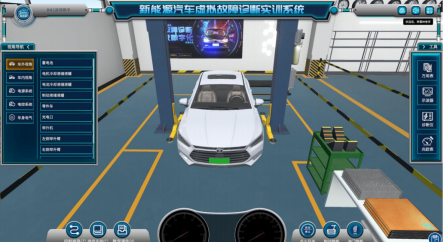 3.新能源汽车技术仿真教学软件:软件主要通过模拟车辆整车故障设置及诊断过程,支持教师进行示范教学,员工进行实训练习、考核。实训车间场景可实时通过鼠标与场景进行交互操作,系统针对整车故障与排除的标准流程进行操作,安装座椅四件套、安装翼子板布/前格栅布、安装车轮挡块、安装举升垫块、举升机操作、连接诊断仪器、读取故障码、清除故障码、确认故障症状及安装状态检查、电路测量、故障点确认和排除。