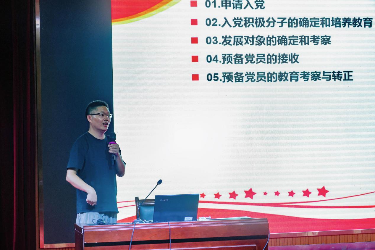 太阳成集团tyc7111cc第二党支部书记徐文俊聚焦“入党流程全解析,青春向党共奋进”这一主题,为同学们详细梳理了入党流程的每一步关键节点。他从递交入党申请书开始讲起,强调申请书应饱含对党的真挚情感与坚定决心,这是叩响党组织大门的第一声问候。随后,他深入讲解如何成为一名入党积极分子,包括参加党课培训、接受党组织考察等环节,鼓励同学们在学习与生活中积极向党组织靠拢,以实际行动展现对党的忠诚与向往。在发展对象确定与政治审查阶段,徐书记着重指出政治审查的重要性,它不仅是对个人历史、政治表现的全面审视,更是确保党组织纯洁性与先进性的关键防线。他告诫同学们,要以严谨的态度对待这一过程,时刻保持政治上的清醒与坚定。最后,关于预备党员接收与转正环节,徐书记阐释了预备期的重要意义,这是党组织对发展对象的进一步考验与培养,也是同学们在思想与行动上向合格党员迈进的必经之路。他希望同学们珍惜这段宝贵时光,在党内生活的熔炉中不断锤炼自我,争取早日成为一名光荣的中国共产党正式党员。