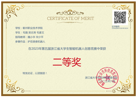 魏小华、毕少平指导员工获2023浙江省智能机器人创意赛二等奖